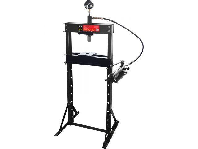 Пресс ручной гидравлический STARTUL Auto - предназначен для ремонтно-монтажных работ, выпрессовки подшипников, болтов и втулок, правки валов, осей и профилей, прессования, контроля допустимой нагрузки и надежности сварочных швов, установки оборудования, а также контроля прочности материалов. Детали, подвергаемые прессовке, могут иметь различные размеры, ограниченные по высоте и ширине размерами рабочего пространства. Основу гидравлического пресса составляют разборная конструкция из стоек, станин, верхней и нижней балок и привода. Подъем станины составляет 858 мм. Для точности измерения прилагаемого усилия пресс оборудован манометром.