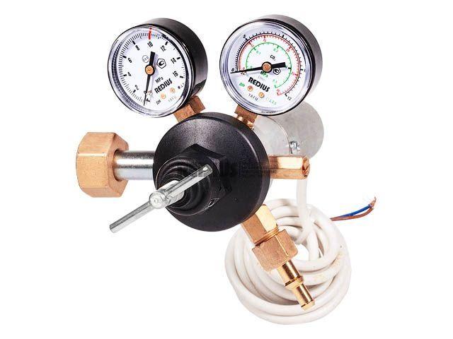 Регулятор расхода баллонный одноступенчатый предназначен для понижения и регулирования давления углекислого газа, поступающего из баллона, и автоматического поддержания постоянного рабочего расхода газа на выходе регулятора в ходе проведения работ. Подогреватель используется для предотвращения замерзания механизмов редуктора при больших расходах газа или при низких температурах окружающей среды. Подогрев осуществляется за счет теплообмена между газом и горячими стенками корпуса подогревателя.